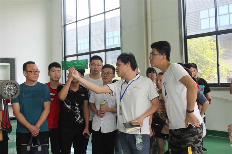 隨后,伍主管帶領(lǐng)師生一行參觀了展廳及各個(gè)生產(chǎn)車間。在參觀過程中,伍主管耐心的向?qū)W生們介紹了每一道光伏逆變器生產(chǎn)的流程、使用的工藝及所需的配件,并一一解答了學(xué)生們提出的各類問題。大家均表示此次參觀收獲頗豐,讓大家對(duì)所學(xué)專業(yè)有了更清晰的認(rèn)識(shí)。