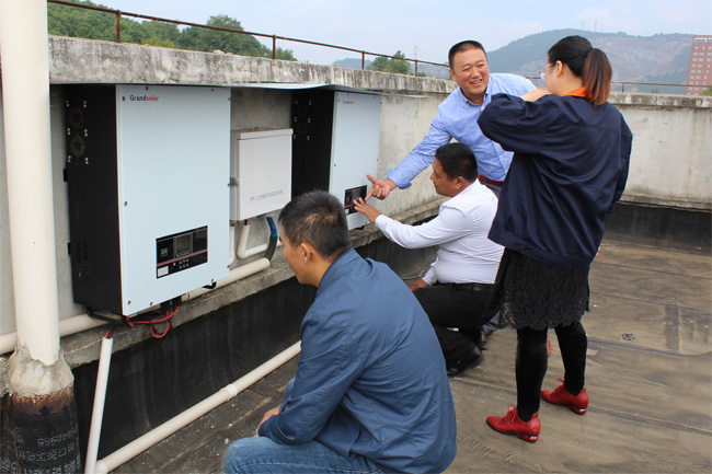 在銷售人員的引領下,劉總興致勃勃的參觀了我公司自建的40KW光伏發(fā)電項目,并詳細了解產(chǎn)品制作工藝流程及發(fā)電運行情況。