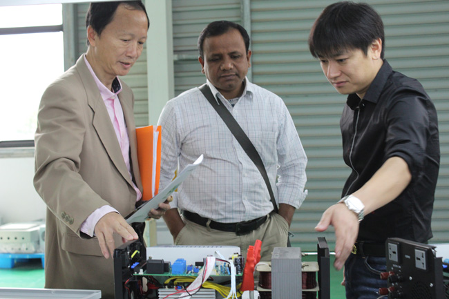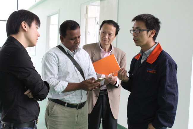 公司全體員工熱情的歡迎遠(yuǎn)道而來的客人,在總經(jīng)理彭總的引領(lǐng)下,Lutfor Rahman先生興致勃勃的參觀了各生產(chǎn)車間,了解產(chǎn)品工藝流程及生產(chǎn)運行情況。