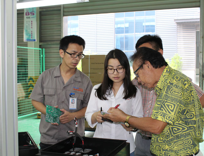 在銷(xiāo)售人員的引領(lǐng)下,Gorge先生興致勃勃的參觀了各生產(chǎn)車(chē)間,了解產(chǎn)品工藝流程及生產(chǎn)運(yùn)行情況。