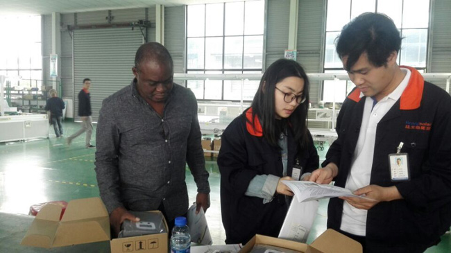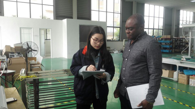 在銷售人員的引領下,Guy先生興致勃勃的參觀了各生產(chǎn)車間,了解產(chǎn)品工藝流程及生產(chǎn)運行情況。